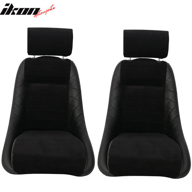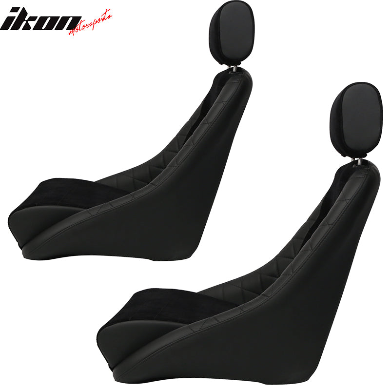 2X Classic Bucket Single Seat With Sliders Suede Black Faux Leather PU