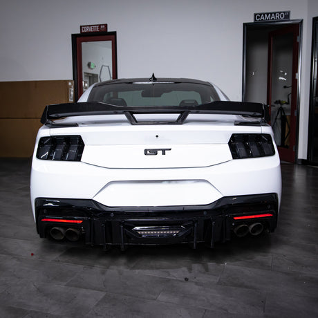 2024 + Ford Mustang S650 Gloss Carbon Fiber 1pc Type SA Integrated Spoiler Decklid Rear Trunk