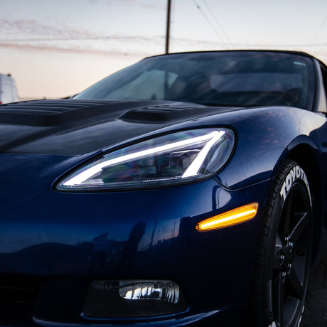 2005-2013 Corvette C6 Projector LED Headlights C8 Style Amber Sequential Turn Signals