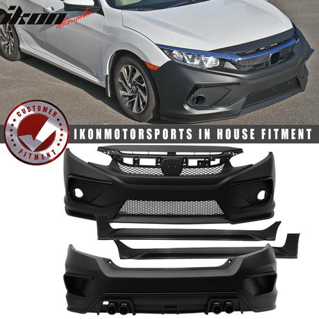 2016-2021 Honda Civic Sedan Front + Rear Bumper Cover + Side Skirts