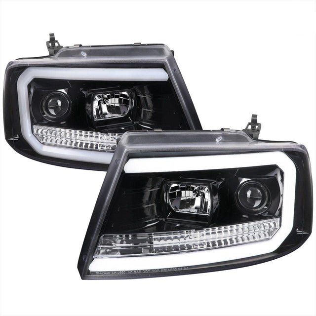 Spec-D Projector Headlights Ford F150 (04-08) Mark LT (06-08) C-Bar LED - Black / Smoke Tint / Chrome