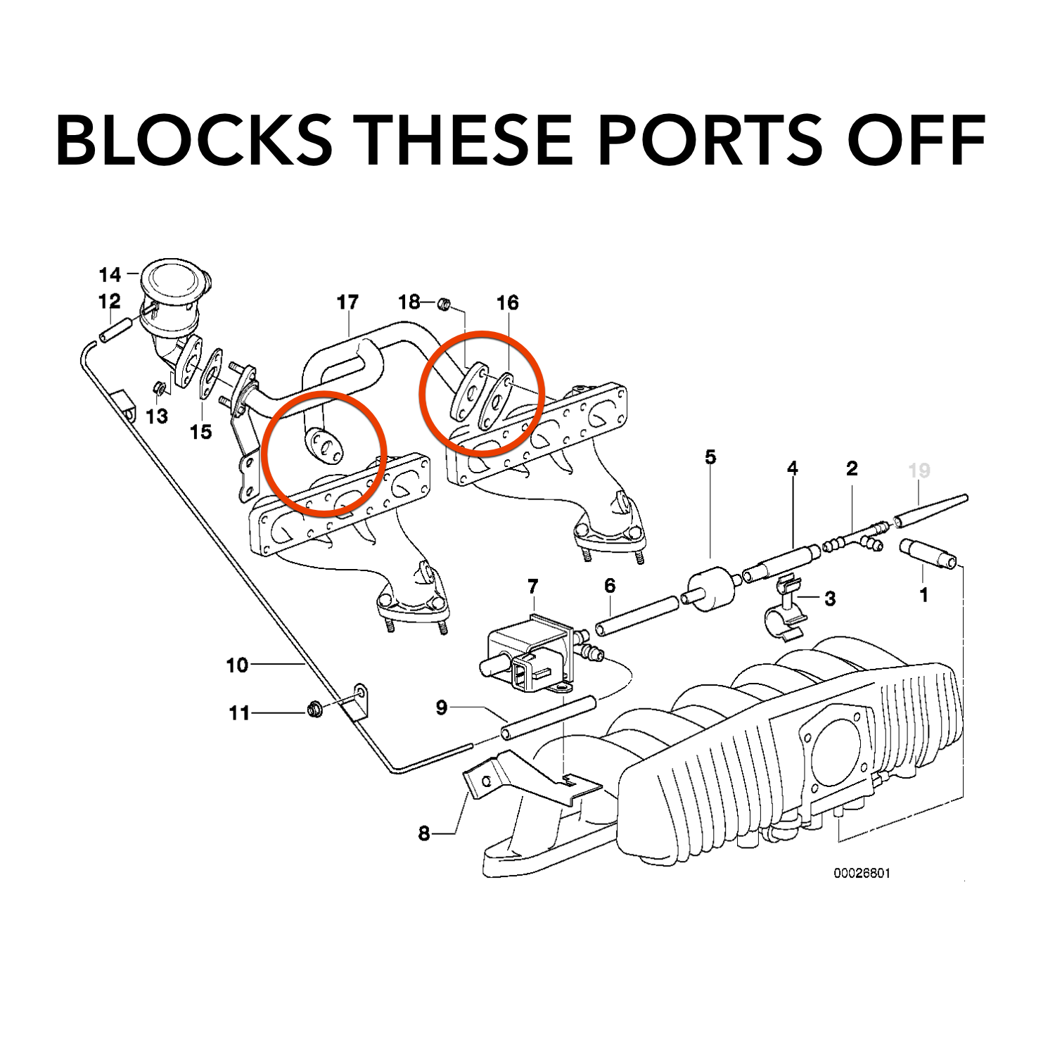 Getting rid of your Secondary Air Pump (SAP) and eliminating the EGR system on your M52/S52? These block-off plates are what you need. The EGR system and Secondary Air Pump (SAP) are known to cause headaches especially when building a race car or swapping your E30 with a 24V engine. Deleting the EGR system, decreases complexity, saves weight and does not interfere with the rest of the exhaust or engine management system when done properly. The Secondary Air Pump (SAP) connects to two ports from the head, when it is removed those ports are left open and need to be blocked off. These plates fit perfectly over the holes. The block-off plates install using the existing studs in the head and are held down with the stock nuts as well.