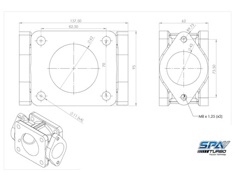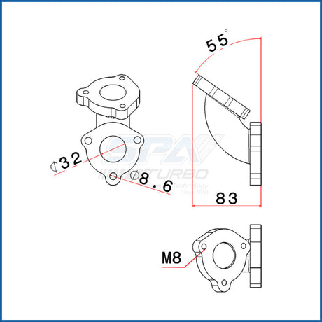 T4 Manifold 2 bolt type Wastegate Adapter 45 degree flange