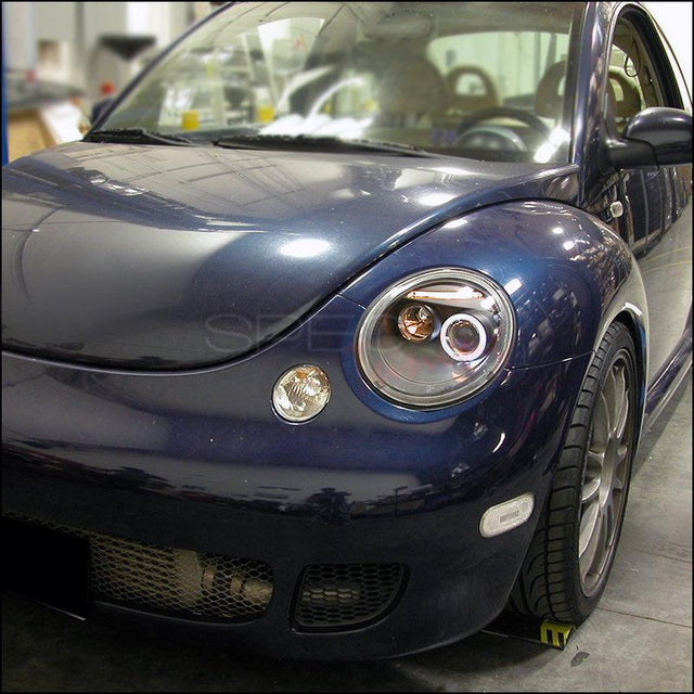 Spec-D Projector Headlights VW Beetle (1998-2005) Halo LED - Black, Tinted or Chrome - Black w/ Tinted Lens is backordered and will ship as soon as it is back in stock.