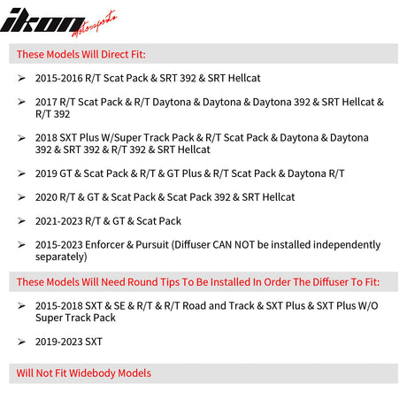 2015-2023 Dodge Charger Black Rear Bumper Conversion Diffuser Lip PP