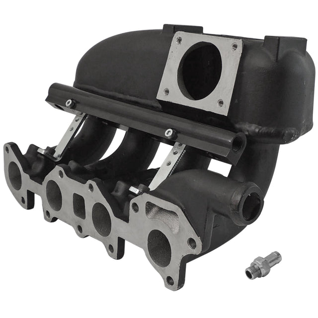SPA Turbo brings to the high performance market the new plenum intake manifold for Chevy Chevette / Pontiac T1000 / Acadian with OHC engine (1.4 and 1.6L) for installation of electronic injection. Made of cast aluminum and designed by the SPA Turbo engineering department, this manifold combines durability, as it has no welds in its construction, with high efficiency and the highest flow on the market, thanks to studies in a flow bank. The angle of the 4 duel injector was properly weighed to ensure the best use and atomization of the fuel (see image). Available with center or forward TBI (ideal for use with intercooler). It can be used in aspirated engines only for conversion from carburettor to injection. It has all water circulation entries in the original pattern.
