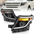 ANZO 11-15 Ford Explorer (w/Factory Halogen HL Only) Projector Headlights w/Light Bar Black Housing
