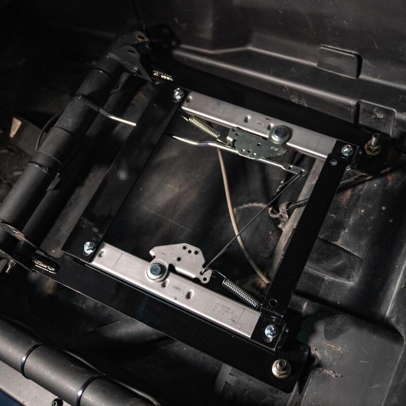 PRP Seat Mount & Slider Kit for Can-Am Maverick X3 and Maverick R (Pair) - PRP's Seat Mount and Slider Kit for the Can-Am Maverick X3 and Maverick R allow you to install your favorite PRP Seats into your UTV. Rather than just a simple adapter mount this is an entire new rail system with more height adjustments, and includes our dual locking seat sliders. A common complaint on the X3 is that the seat sliders start to get stuck after dirt and dust gets into the wheels. So we've added in our own slider kit that has been tried, tested, and proven over the last 20 years in all sorts of off-road environments. Our dual locking sliders provide more security and stability. Both the right and left sides of the sliders have locking mechanisms to keep them in place during hard impacts. These seat mounts allow for an enhanced range of adjustability, allowing the seats to get as low as they can possibly go. You have the ability to set the height and depth of the mounts to get the perfect position for each rider. Creating better comfort, and confidence behind the wheel. The flat base mounts are lower than the stock rails, and have an offset mounting point in the front. So you can flip the mounts down if you want to be lowered an inch, or flip them up if you want to raise the seat height an inch. The mounts use the existing mounting points in the cab, which allow you to raise or lower the seat in the front and back to adjust the seating angle. At the lowest settings with the mounts flipped down, you can sit about 3" lower. This mount is perfect for those with lowered cages. For Maverick R owners this the only mount that we recommend using. The passenger side of the Maverick R has a glove compartment that sticks out farther, making it harder for taller passengers to fit comfortably. This seat mount and slider kit allows you to adjust seat farther back, and adjust the recline angle to get more legroom on the passenger side. Compatibility: These mounts work with any PRP UTV