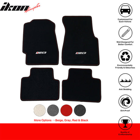Car Floor Mat for 1992-95 Honda Civic Black Logo Red Stitch 4PC Nylon