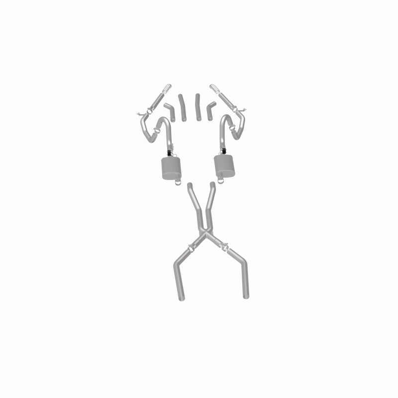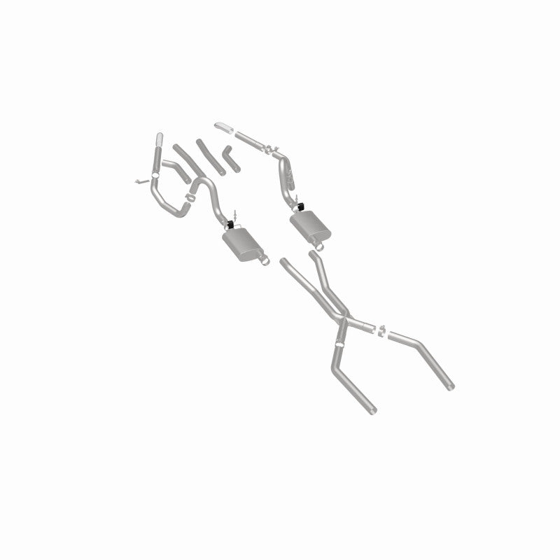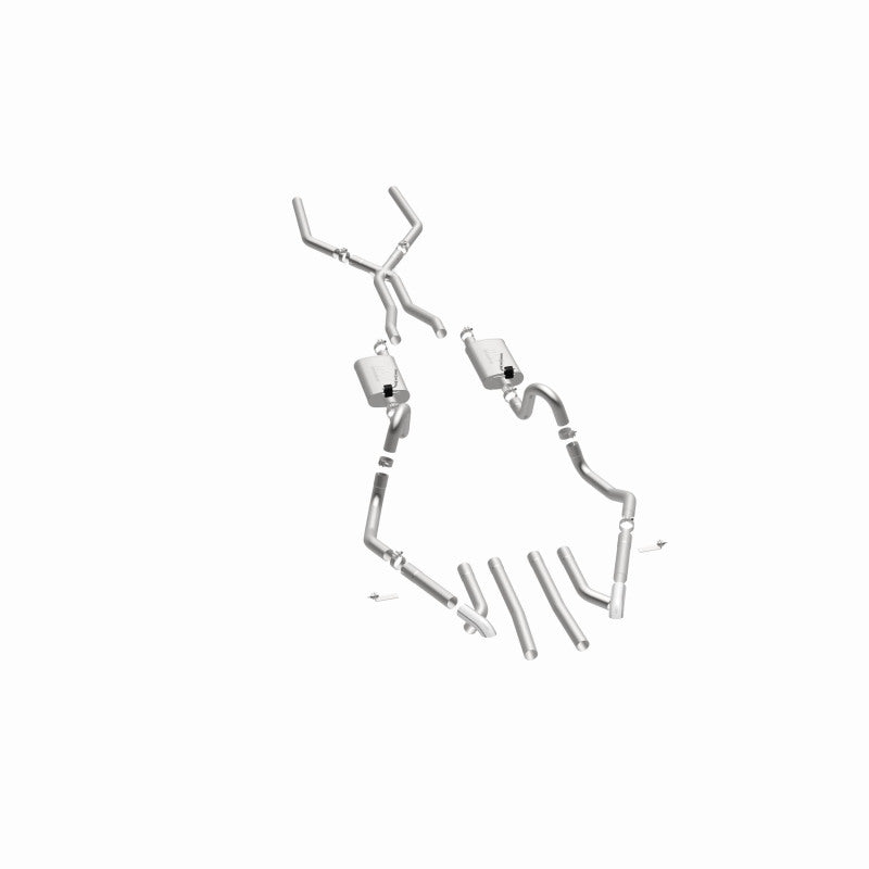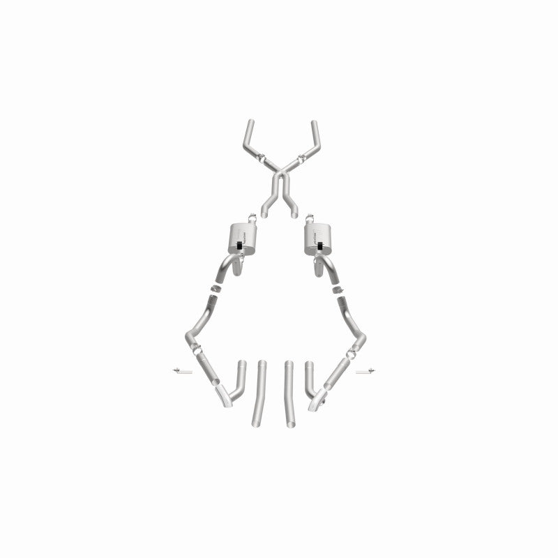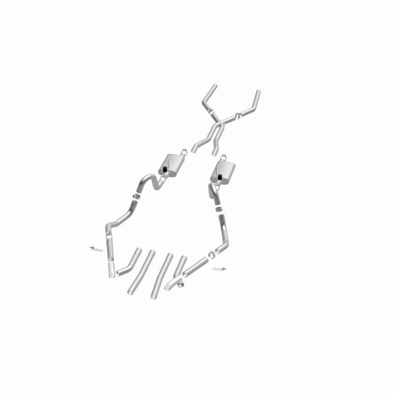 The MagnaFlow Street Series Crossmember-Back Performance Exhaust System 15894 brings enhanced engine sound and dyno-proven performance to your muscle car with a healthy helping of our deep, resonant signature exhaust note at Moderate exterior and Mild interior sound levels. Thanks to its durable, corrosion resistant stainless steel design, this exhaust system will handle whatever tarmac you decide to leave your mark on. This performance exhaust kit features a crossmember-back layout designed to replace your exhaust system from the crossmember on back. With its fast-flowing, mandrel bent 2.5in. main piping and 2 Straight-Through mufflers ending in a Multiple Exit Options exit with 2.75in. Polished Weld-On Single Wall Turndown Cut Edge tips, your muscle car will be sounding as awesome as it looks. Extensive 3D scanning during development has resulted in a direct-fit design that you can easily install yourself. 15894 is produced using CNC precision robotic manufacturing techniques and is backed by MagnaFlow's limited lifetime construction warranty.