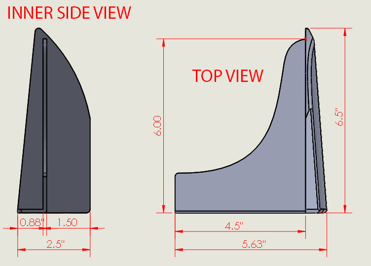 Universal 6.5 x 2.5 V2 Style Winglet For Side Skirt Extensions PP 2PC