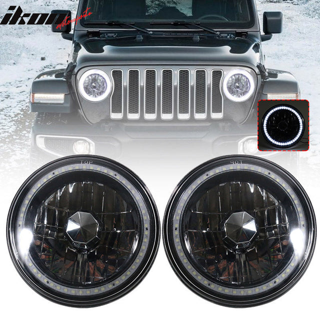 Universal 7" H6024 6014gen White Ring H4 Bulb Angel Eye Headlight