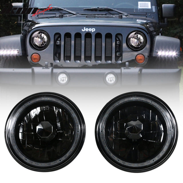 Universal 7In Round Chrome Half White Half Black RGB Halo Headlights