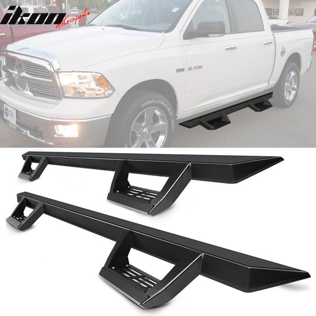 2009-2023 Dodge Ram 1500 IKON V2 Style Black Running Board Solid Steel