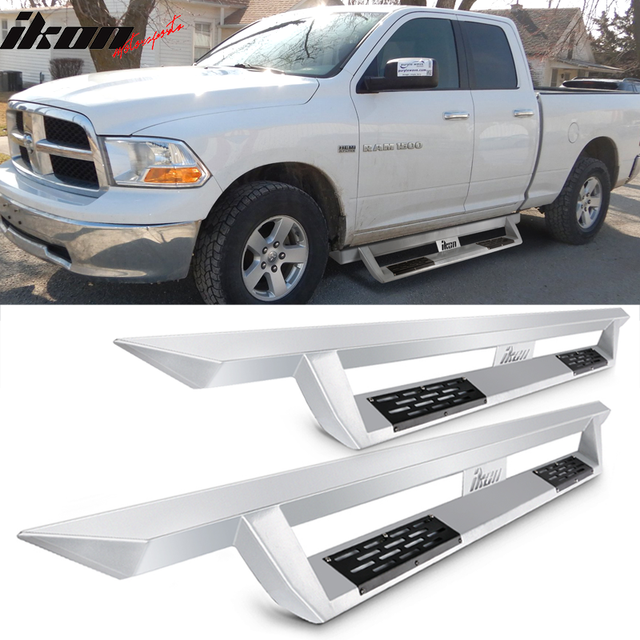 2009-2023 Dodge Ram 2500 3500 IKON V1 Silver Running Board Solid Steel
