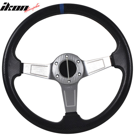 350MM 6 Hole Steering Wheel Deep Dish Spoke Blue Ring & Emblem PVC