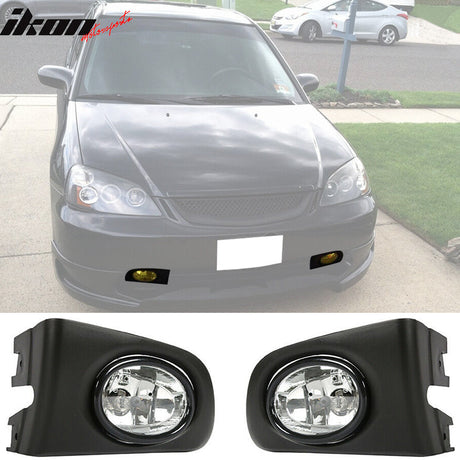 2001-2003 Honda Civic Black Housing Clear Lens Fog Lights Lamp Pair