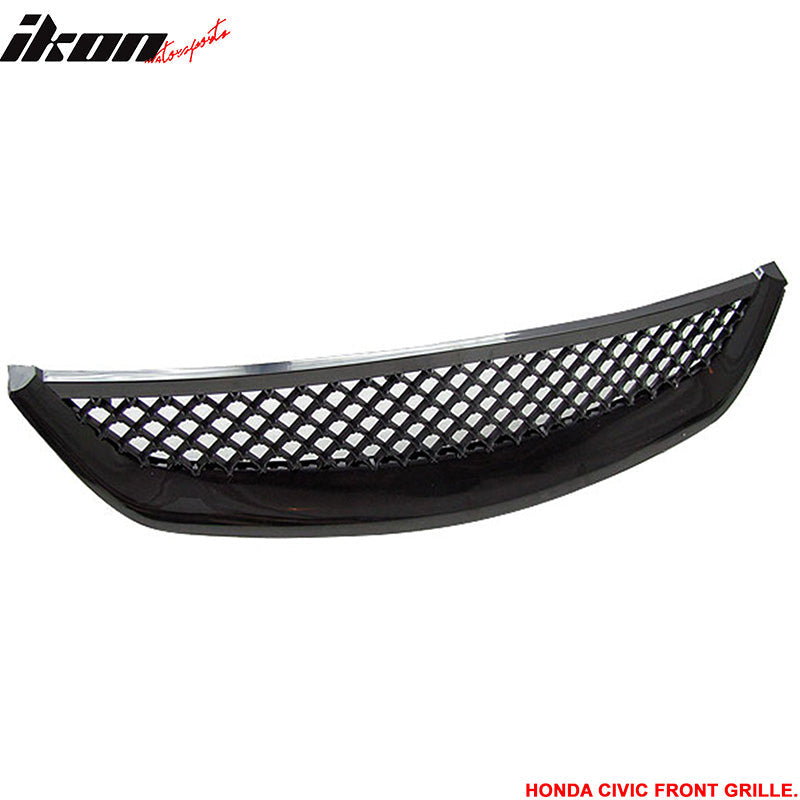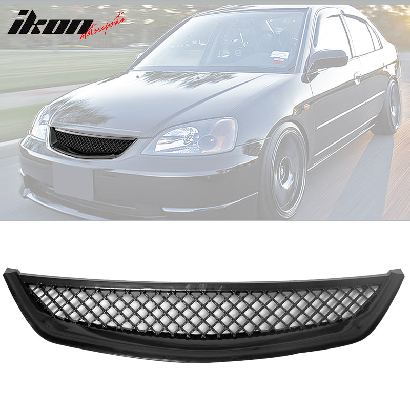 2001-2003 Honda Civic 2Dr 4Dr T-R Black Front Hood Grille Grill ABS
