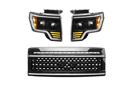 Essential Series Headlight and DRL Grille 2pc Bundle 09-14 Ford F150 OLM Outside Line Motoring