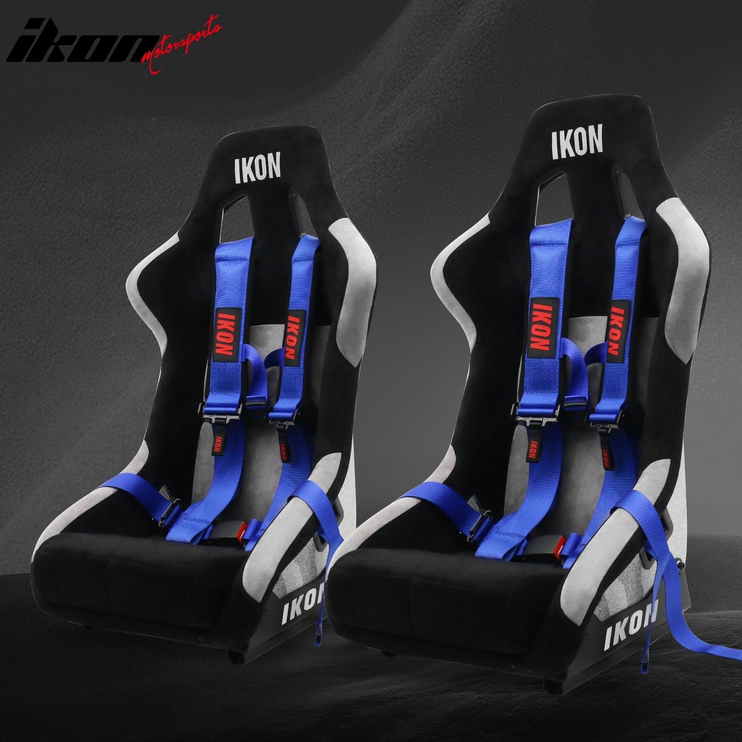 Universal Racing Bucket Seats W/ Slider 4 Point 3" Belt Harness Blue