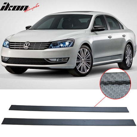 Fits 13 VW Passat CF Texture Side Skirt Extension Flat Bottom Line Lip