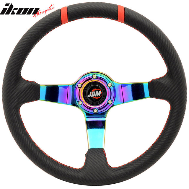 350MM Black CF Print Neo Spoke Sport Racing Steering Wheel Logo
