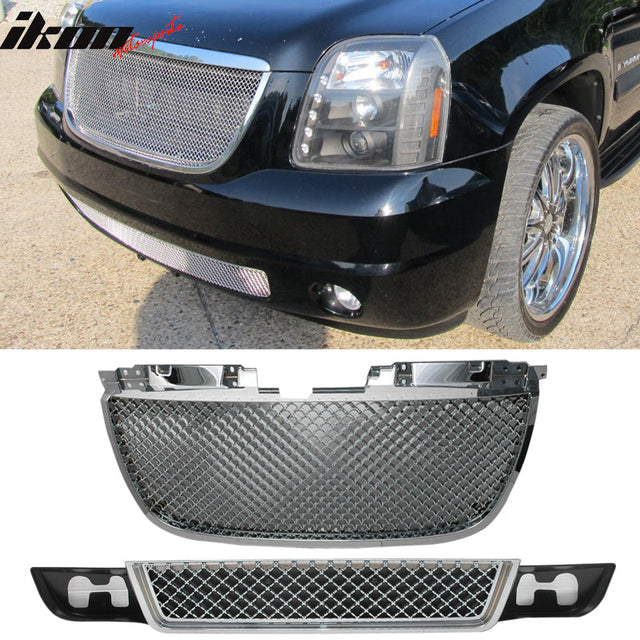 Fits 07-14 GMC Yukon /Yukon XL 1500 Denali Up + Low 2PC Chrome Mesh G