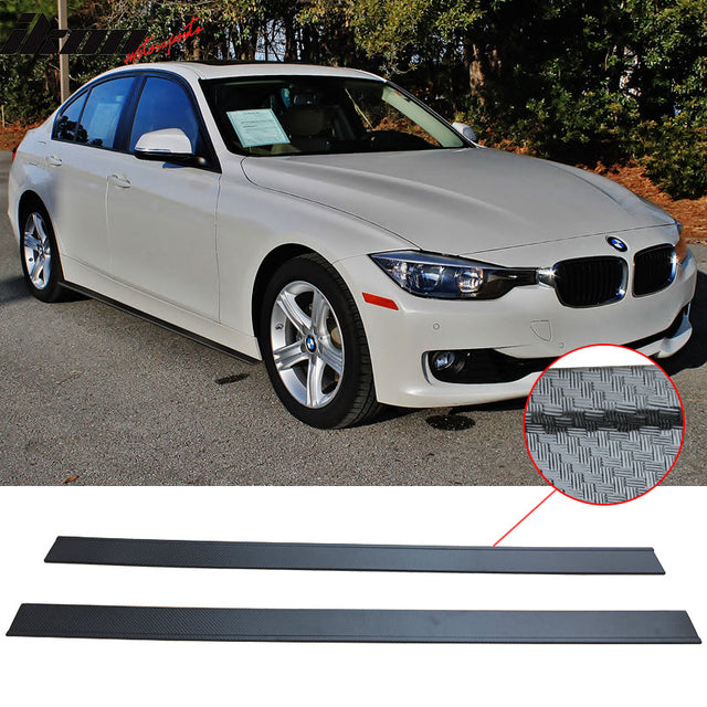 Fits 14 BMW 328I CF Texture Side Skirts Extension Flat Bottom Line Lip