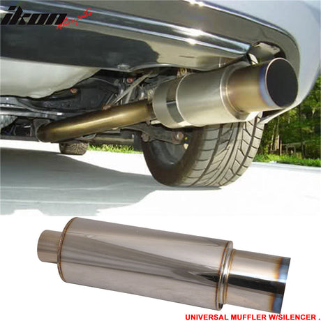 Universal N1 Style 4In Steel Muffler Titanium Flat Tip + Silencer