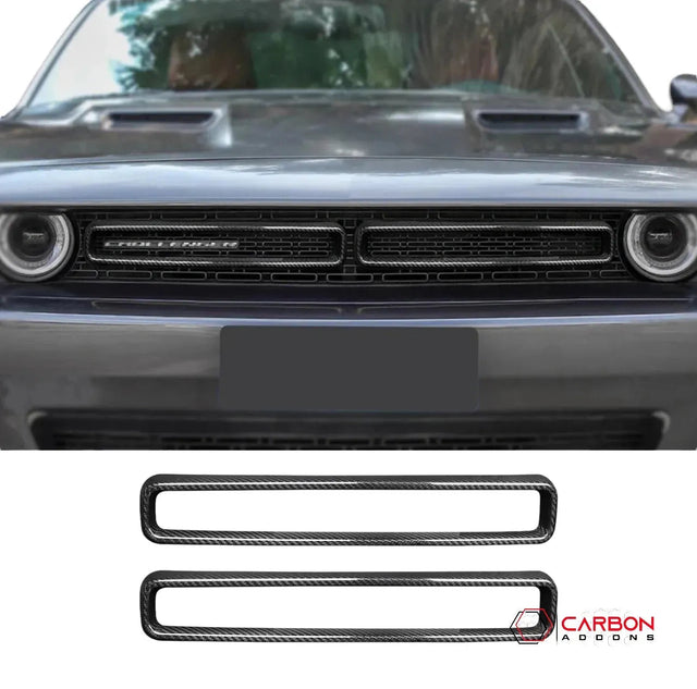 2015-2023 Dodge Challenger Real Carbon Fiber Front Bumper Grill Trim Covers - Black Carbon Fiber is backordered and will ship as soon as it is back in stock.
