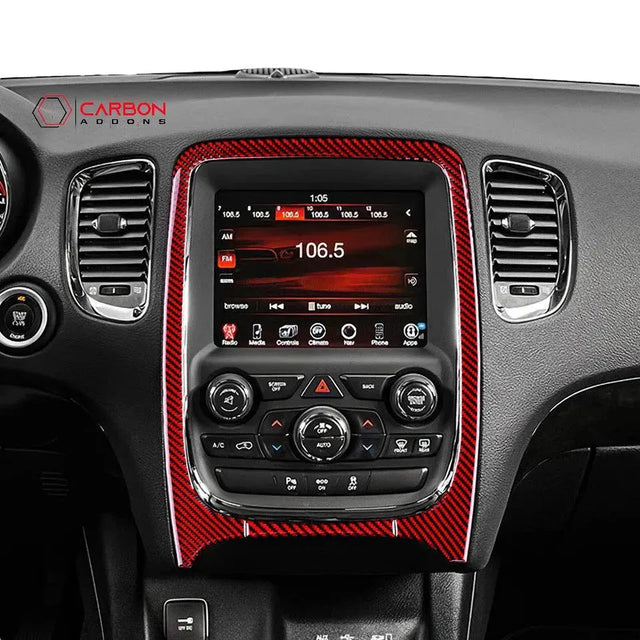 Real Carbon Fiber Infotainment Radio Screen Trim Overlay for 2011-2020 Dodge Durango - Black Carbon Fiber is backordered and will ship as soon as it is back in stock.