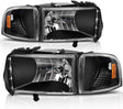 Autosaver88 Headlight Assembly Compatible With 1994 1996 1997 1998 1999 2000 2001 2002 Dodge Ram 15002002 Pickup 2500 3500 Black Housing Amber Reflector Corner Lights