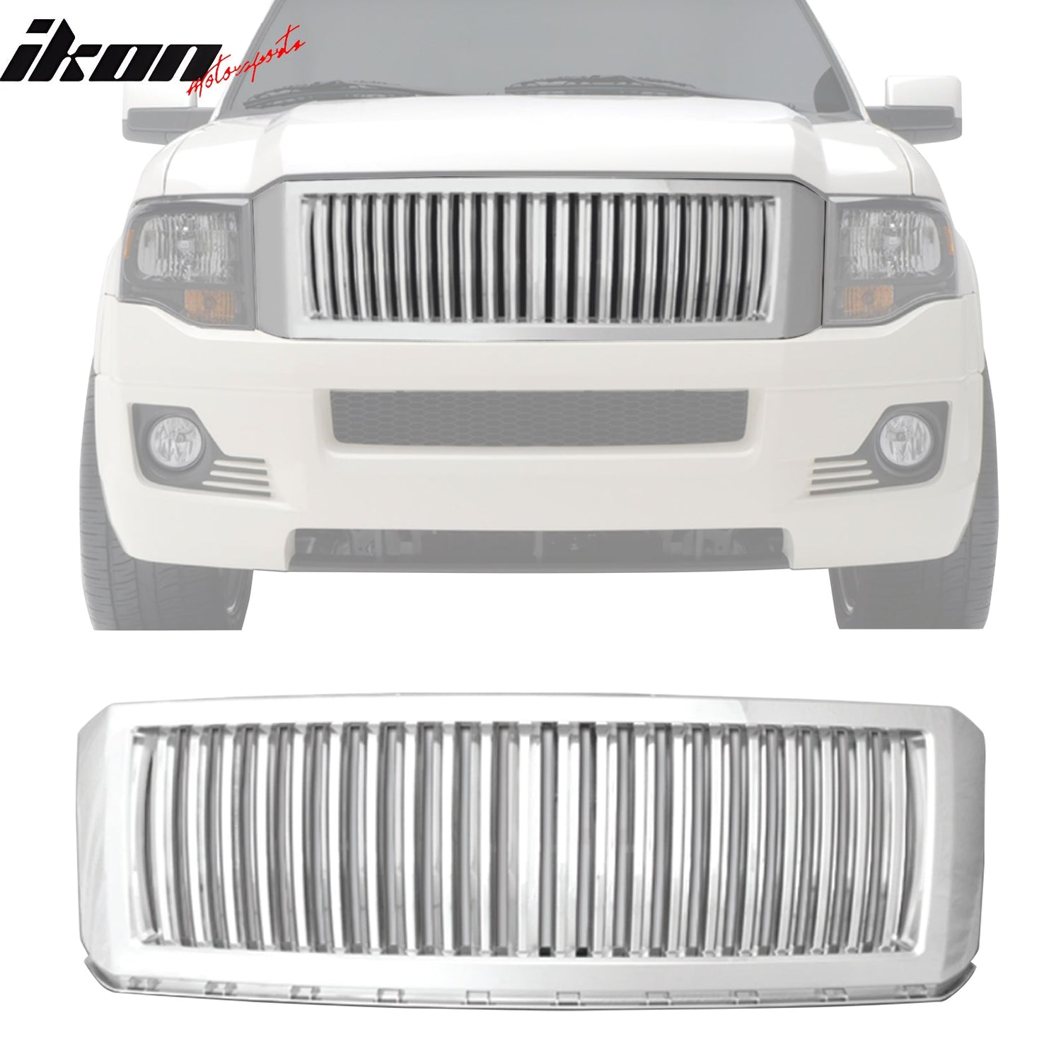 2007-2014 Ford Expedition Vertical Style Front Hood Upper Grill Chrome