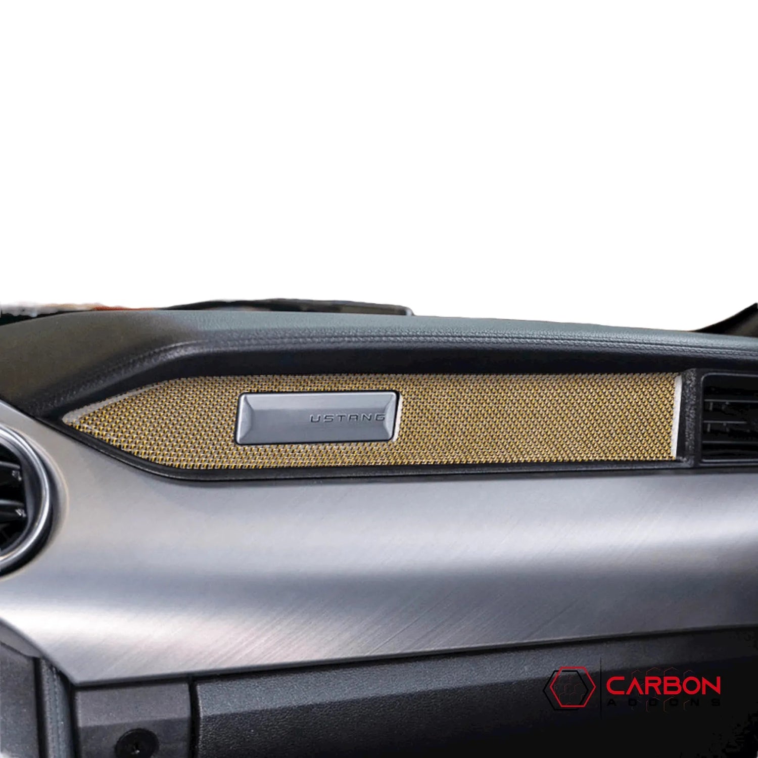 Modern engineering calls for modern design. Get your S550 2015-2022 Mustang Carbon Interior Passenger Dashboard Emblem Trim Overlay  today!