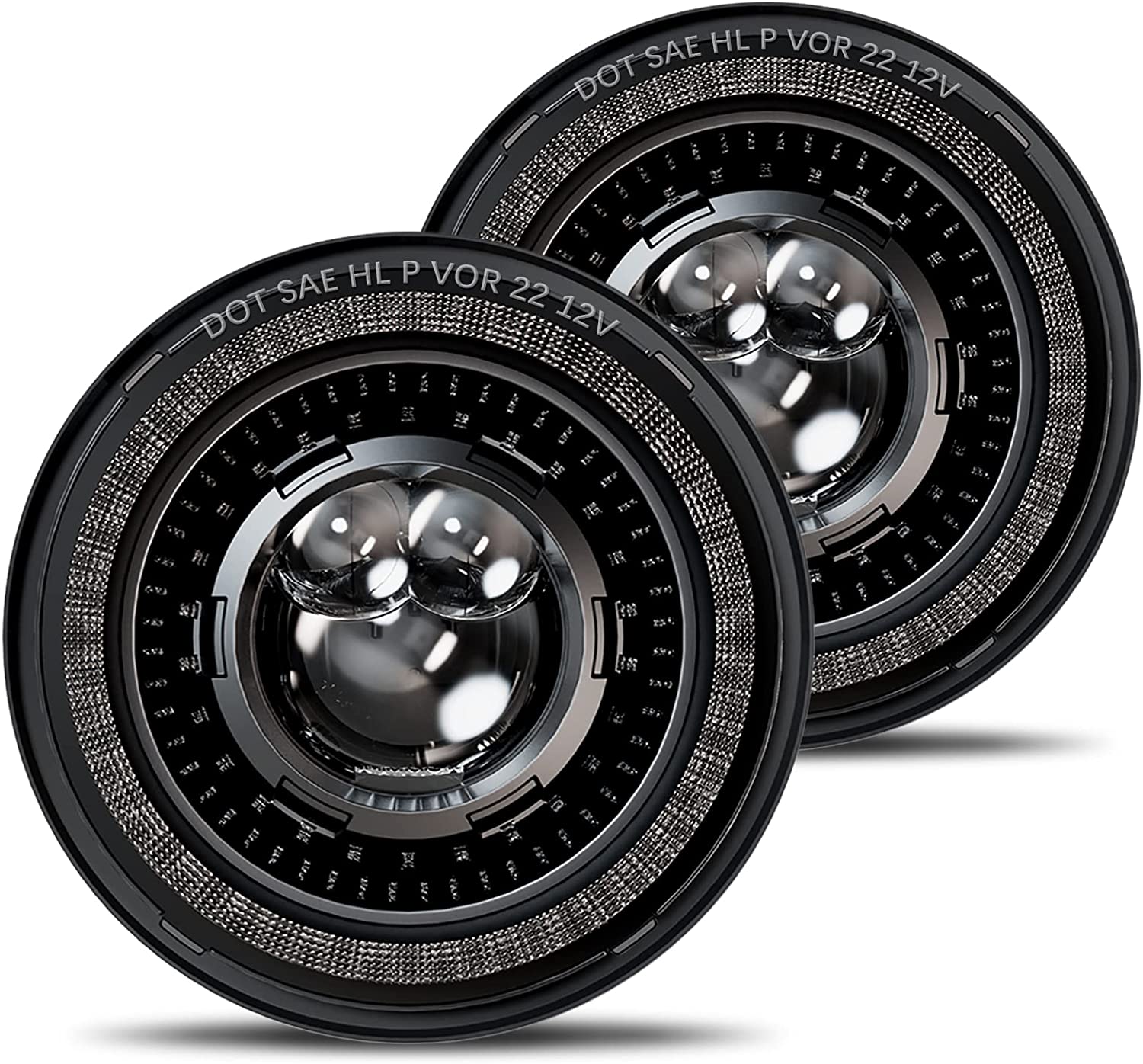 HWSTAR 1000% Bright Anti-Glare 7 Inch Round LED Headlights Compatible with Jeep Wrangler JK JKU TJ LJ Chevy Ford GMC etc. With Starry Boot Gradient Halo Turn Signal DRL H6024 DOT Hi/Lo Sealed Beam