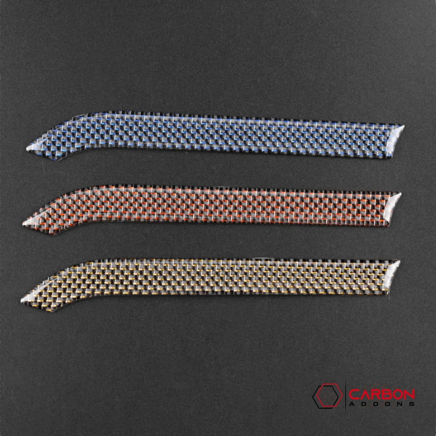 This carbon fiber interior Dashboard Overlay is made using real carbon fiber woven in a 2x2 twill weave with an added metallic thread that reflects it's color for an added accent to the already beautiful carbon fiber strands. If you do not want the added metallic thread, you can find our standard carbon fiber version on another listing.